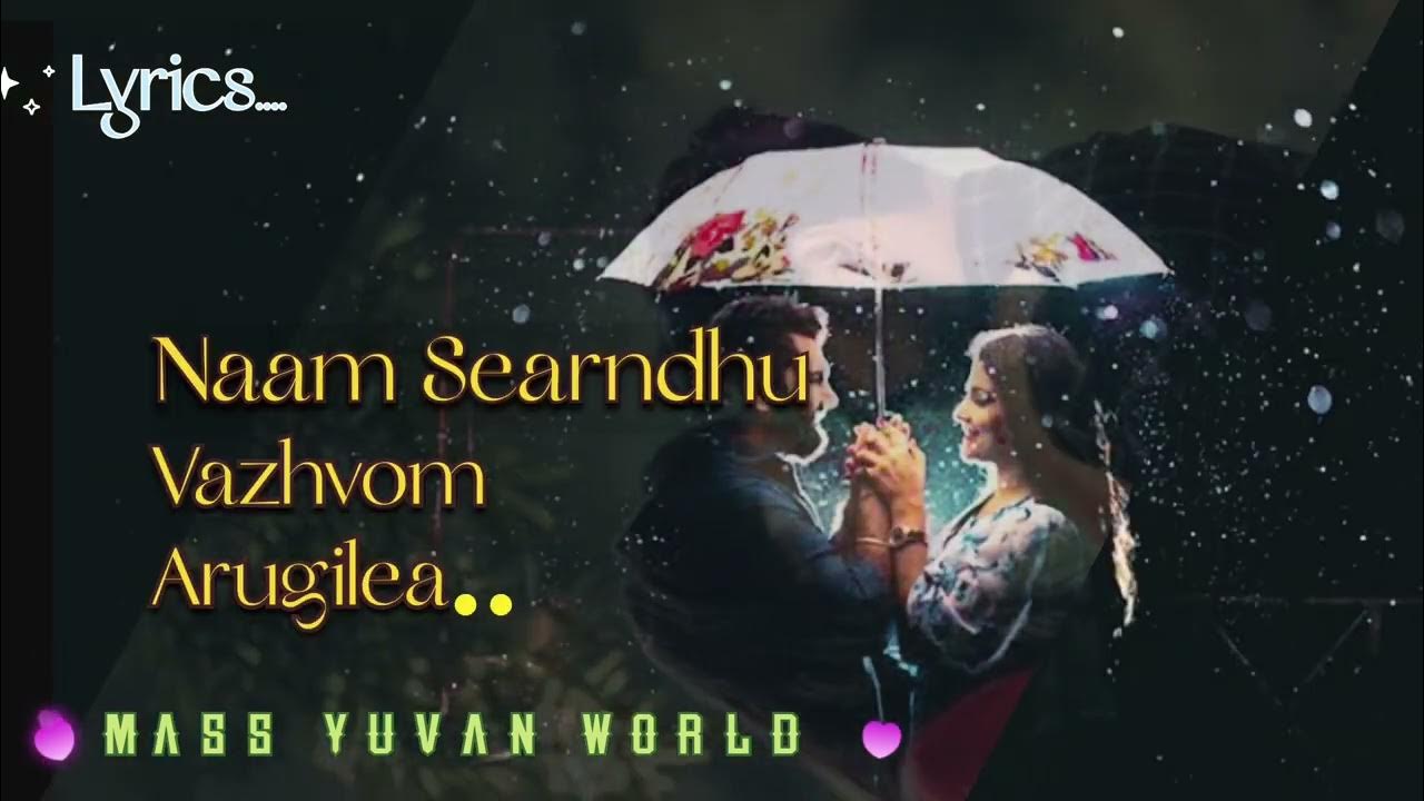 Oh unathu sirippinil sitharum azhaguyinai. Pookkal rasithe vaasam piranthatho. Enathu piraviyin arththam unarave. Unnai enathu vazhvin thanthatho. Iruvar vaazhum ulagile. Unnai anaithi kolven uyirile. Iravil theeyum nilavile. Naam sernthu vaazhvom arugile. Adi unnodu vaazhum ovvoru naalum.