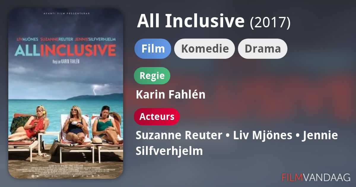 Waar te zien . Film All inclusive Regie Aniëlle Webster Met Tibor Lukács, Jennifer Hoffman, Aiko Mila Beemsterboer Te zien De Bios, Drachten; Kinepolis, Emmen; Kinepolis en Pathé,.