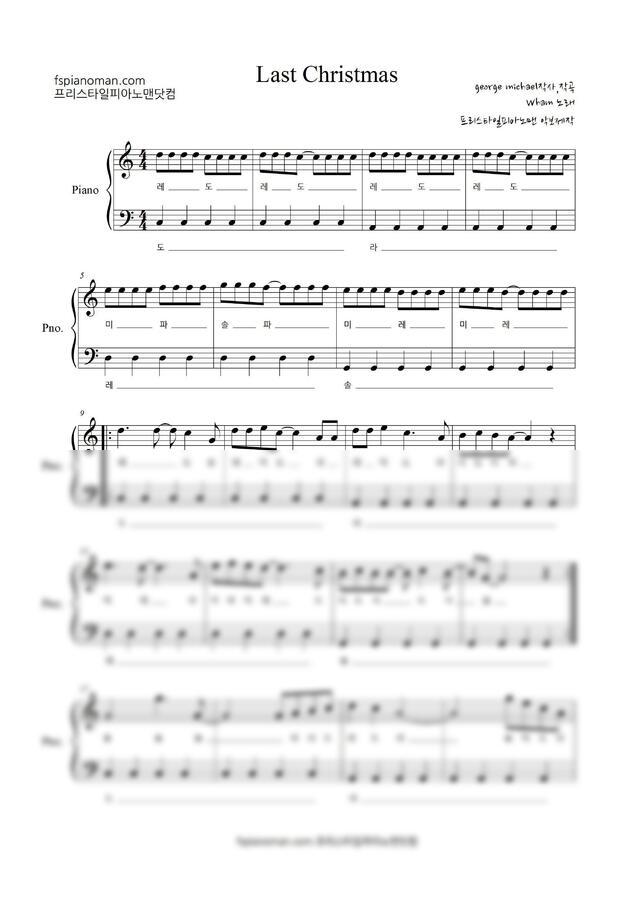 악보 > Wham! Last Christmas (다장조 계이름 악보) by 프리스타일피아노맨닷컴