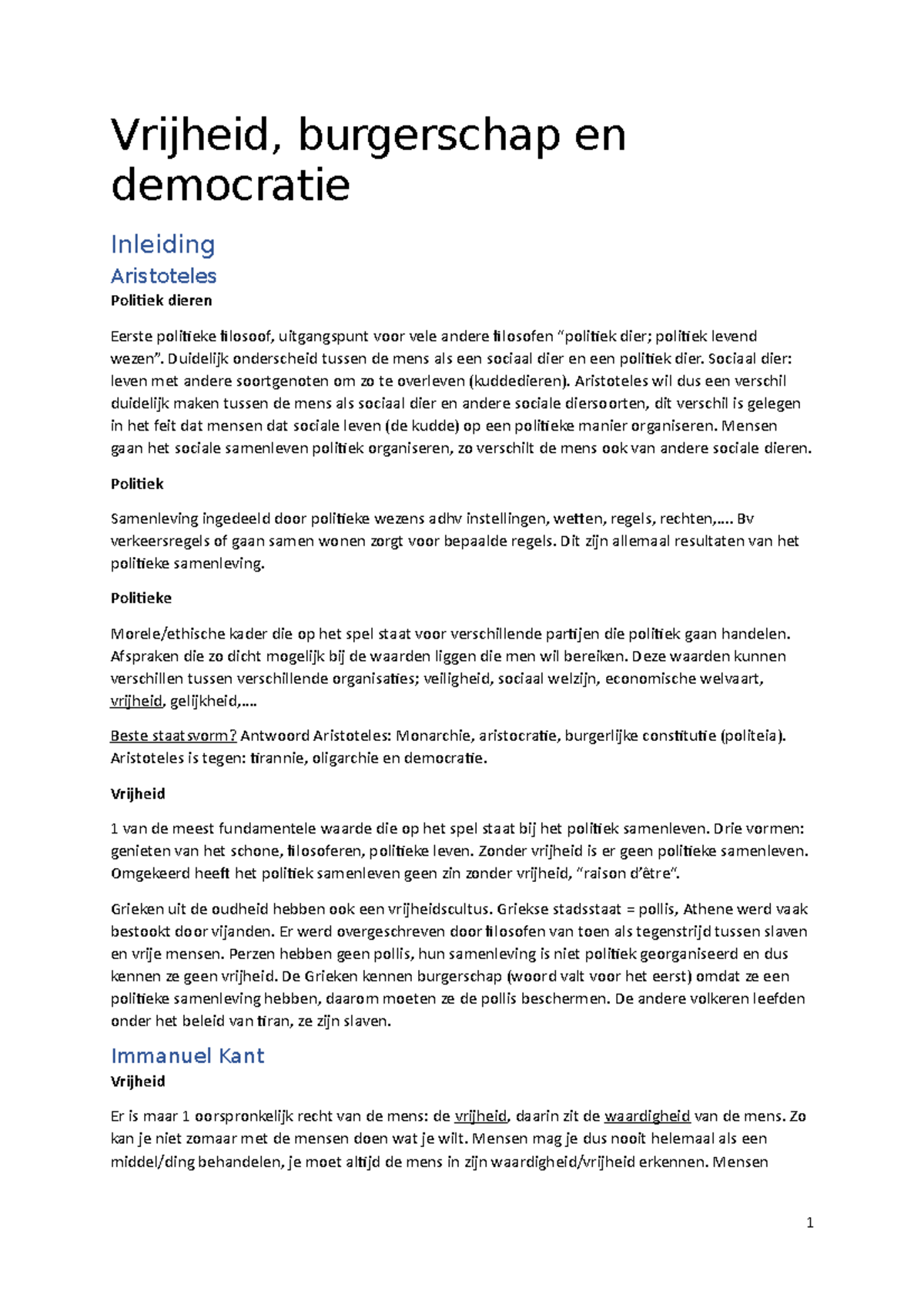 Vrijheid, democratie en burgerrechten Vrijheid, burgerschap en democratie Inleiding