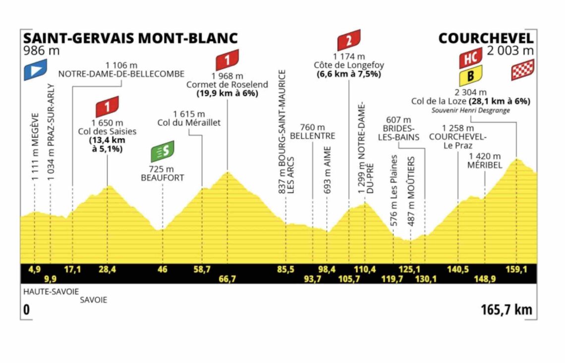 Woensdag 19 juli - De 17e etappe van de Ronde van Frankrijk vertrekt vanuit de finishplaats van etappe 15: Saint-Gervais Mont-Blanc. De meet ligt op het bergvliegveld boven Courchevel. Even daarvoor slechten de renners de brute Col de la Loze. De route is 165,7 kilometer lang en herbergt 5.400 hoogtemeters.