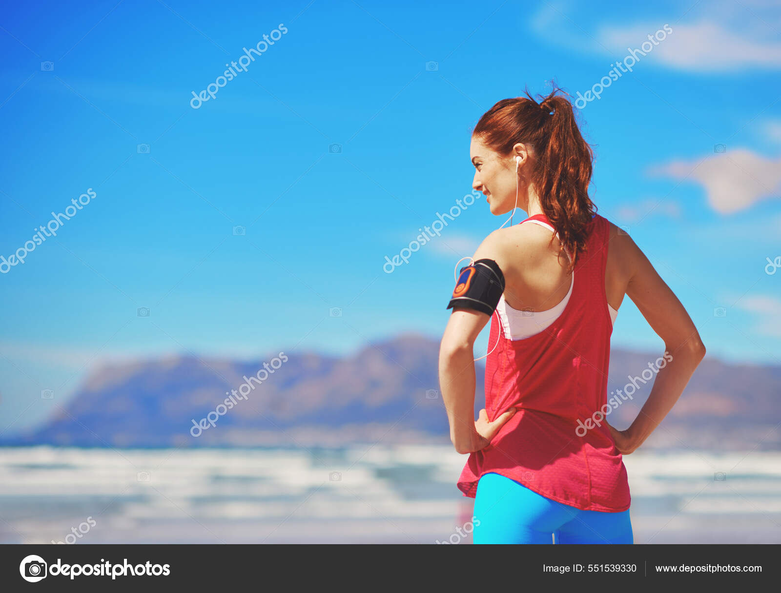 She loves working out on the beach. Rearview shot of a young woman standing with her hands on